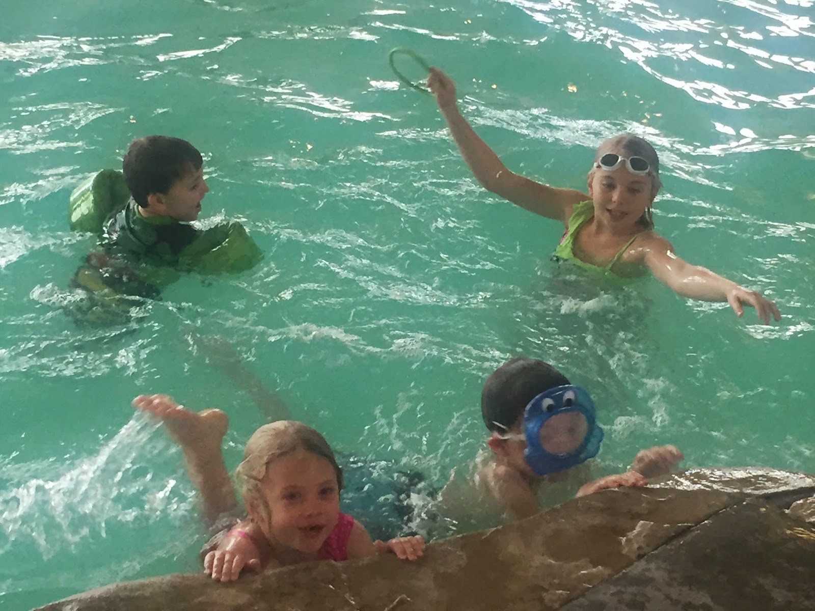 We started the morning off with a big breakfast than got dressed for swimming! Big Cedar has an indoor pool with a slide and a hot tub. We were looking forward to this.